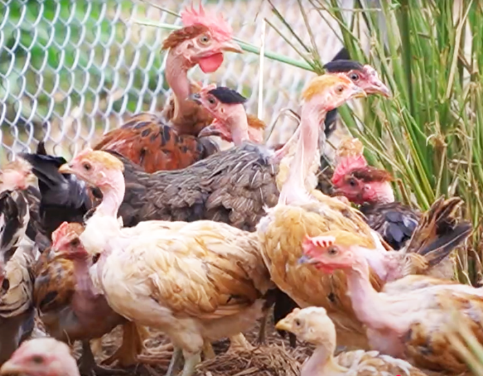 Gà trụi lông cổ nổi bật với cổ dài không có lông, màu sắc lông đa dạng, khả năng chịu nóng tốt và sức đề kháng cao, phù hợp với phương thức bán chăn thả truyền thống.
