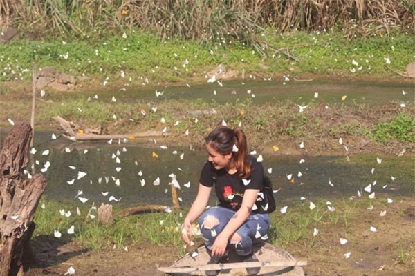 Ở đây, loài bướm phổ biến nhất là bướm trắng. Ngoài ra, còn nhiều loài bướm rừng đẹp đầy màu sắc như bướm phượng, bướm khế... quyến rũ bước chân của kẻ lữ hành. Ảnh: Lê Thế Nghĩa.