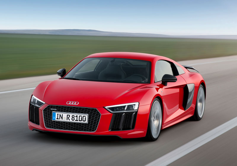 5. Audi R8 2015. Người mua có thể chọn động cơ V8 với dung tích 4,2 lít, công suất tối đa 430 mã lực hoặc động cơ 10 xi lanh, dung tích 5,2 lít, sản sinh ra công suất tối đa 525 mã lực. Cả 2 phiên bản này đều được trang bị mô-men xoắn cực đại 391 Nm.