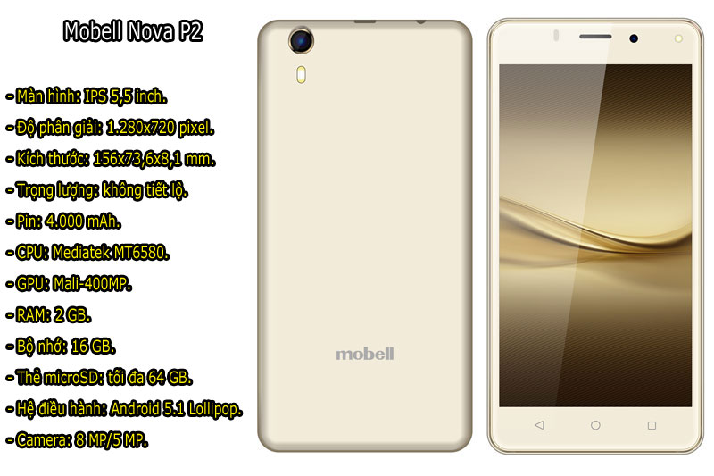 Mobell Nova P2 (2,79 triệu đồng). Mặc dù sở hữu lớp vỏ bằng nhựa nguyên khối, song Nova P2 được Mobell trau chuốt khá tỉ mỉ nên máy trông rất bắt mắt. Phablet này có 2 màu sắc gồm vàng và màu cà phê sữa. Nova P2 hỗ trợ 2 khe cắm SIM nhưng không thể kết nối mạng 4G LTE.