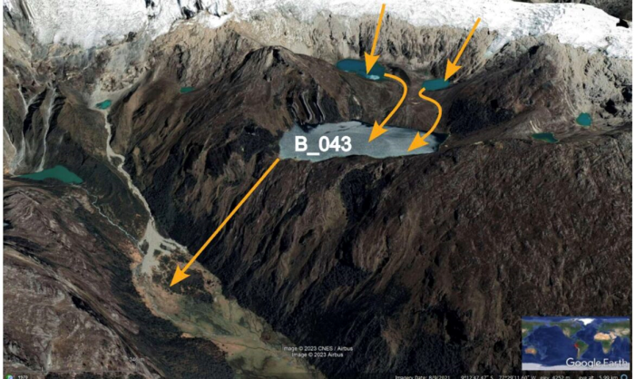 Tiến sĩ Joanne Wood, nghiên cứu sinh sau tiến sĩ tại Đại học Exeter, cùng với các đồng nghiệp đã tìm hiểu nhiều hồ băng ở vùng nhiệt đới Peru và dãy Andes ở Bolivia, Nam Mỹ, cũng như ghi chép về những sự kiện bùng phát liên quan tới động đất. Họ phát hiện 59 trận động đất xảy ra trong khoảng năm 1900-2021 gần các hồ băng, chỉ có một cơn địa chấn dẫn tới lũ bùng phát.
