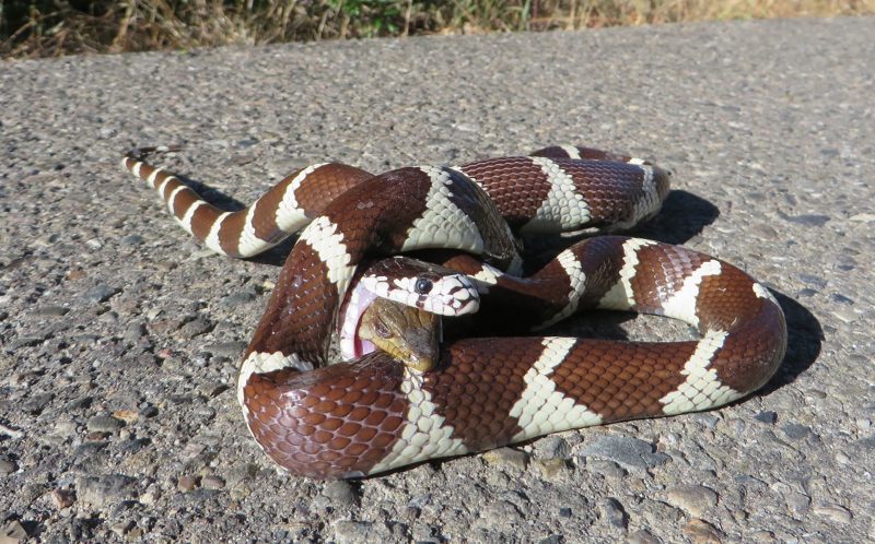Valley, California. Một con rắn vua cỡ lớn đã tấn công con mồi của mình là một